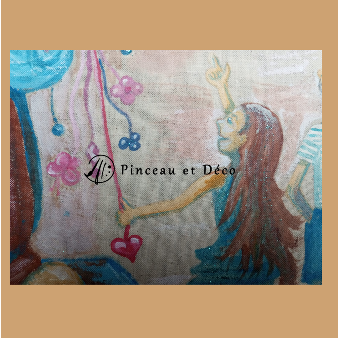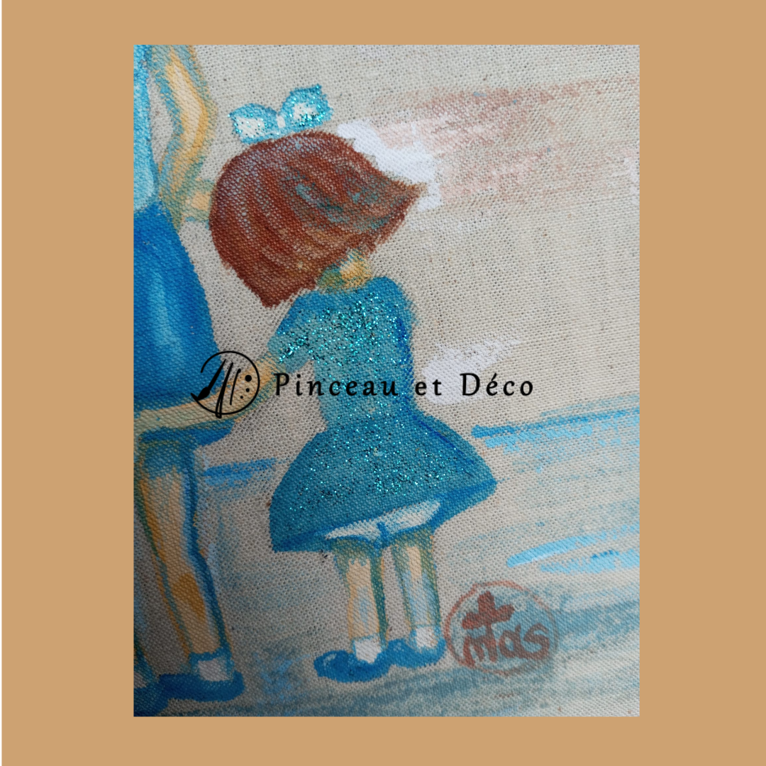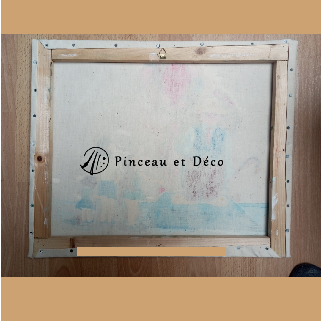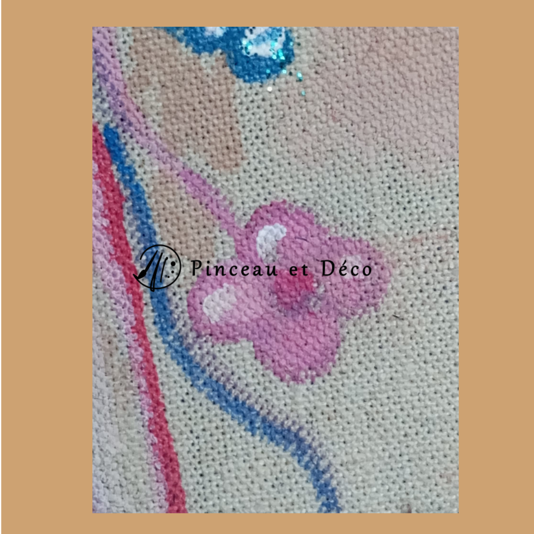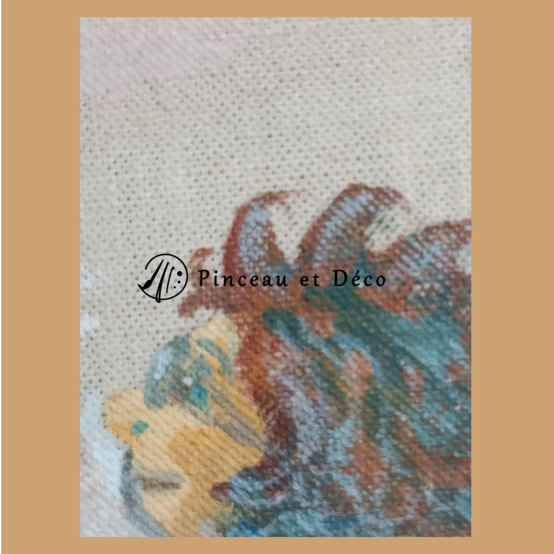 Peinture acrylique avec paillettes -Toile sur lin brut sans cadre - Dim. 38X46 cm format paysage - Chassis de récupération non neuf -